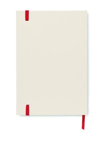 A5 notebook with hard cover made of 70% recycled milk carton pack and 30% recycled paper. Casebound. 160 lined pages (80 sheets 80 gsm) made of recycled paper. Elastic closure strap, ribbon bookmark.
