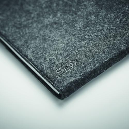 A4 conference folder in RPET felt. 100 lined recycled paper sheets notepad with elastic pen holder.