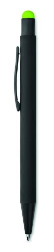 Push button stylus pen in aluminium. When the logo is engraved on to the barrel, the colour revealed matches the colour of the touch tip. Blue ink.