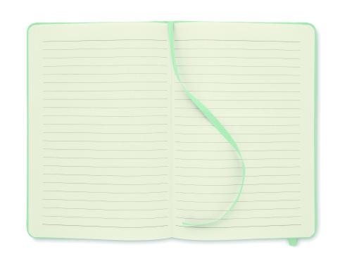 A5 notebook with hard 600D RPET cover. Casebound. 160 lined recycled paper pages (80 sheets). Matching elastic closure strap and ribbon bookmark. FSC®-certified | FSC MIX CREDIT, P7.1, FSC-C213206