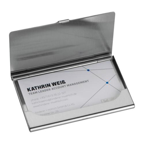 Matt metal business card holder. This sturdy case protects your cards from damage.