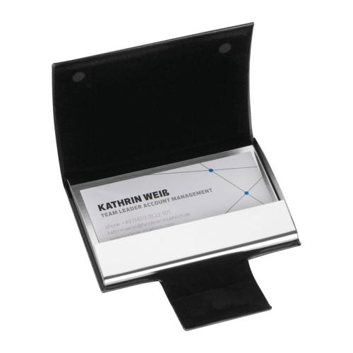 For stylish storage of your business cards, the case is upholstered with high-quality artificial leather and provides a magnetic closure.