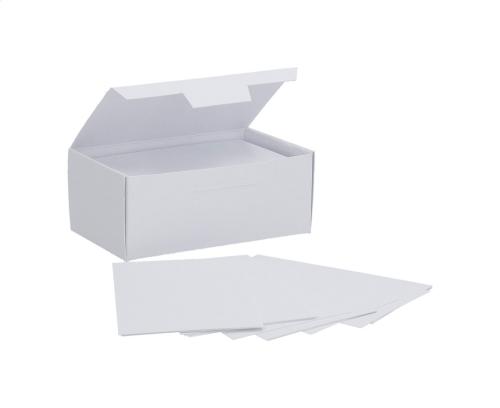 100 pcs custom made business cards with full colour printed graphics on both sides. Matte white paper, 350 g/m². In white paper box.