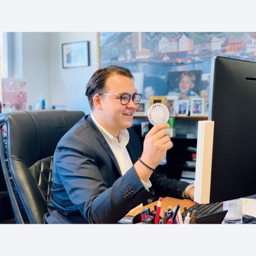 USB hand held fan with 3 adjustable levels, comfortable handle, and Micro USB charging cable, an ideal companion on-the-go. Your advertising is printed on the handle.