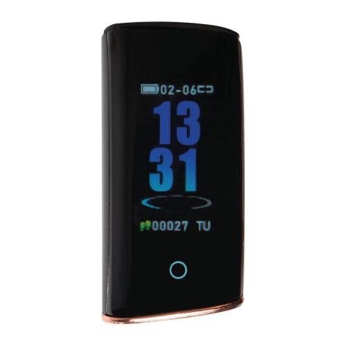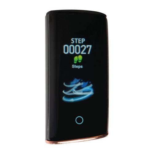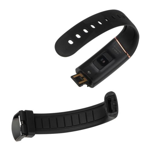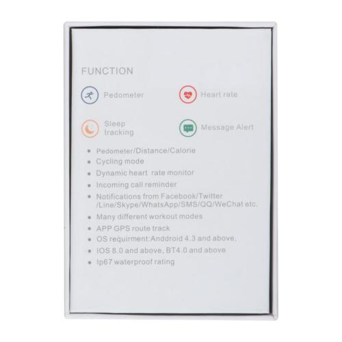 Smart fitness bracelet made of silicone with coloured illuminating display. Compatible with iOS 8.0, Android 5.1, Bluetooth 4.0 and above, easily rechargeable via USB plug. Features date and time display, pedometer, calorie display, range finder, heart rate monitor, training mode, etc. Evaluate your results through the App "My State."