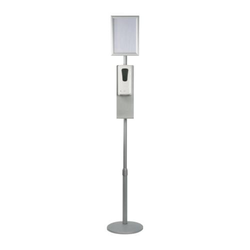 Disinfection column with a solid base, a telescopic rod (125-165 cm), an A4 sized logo space and a container with 1000 ml capacity for disinfectant gel or liquid, batteries are not included. Ideal for authorities, restaurants, shops or companies. You can print out your logo message yourself on A4 and customize it at any time.