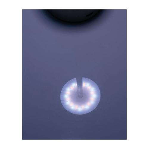 Stainless steel table lamp with rechargeable battery (800mAh) and 24 LEDs. The lamp is dimmable and the light colour can be changed between warm and white light. C-type charging cable included.