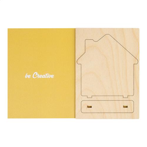 Custom made paper postcard with wooden craft puzzle. Including C6 postal envelope. Price includes digital printing on both sides. MOQ: 100 pcs.