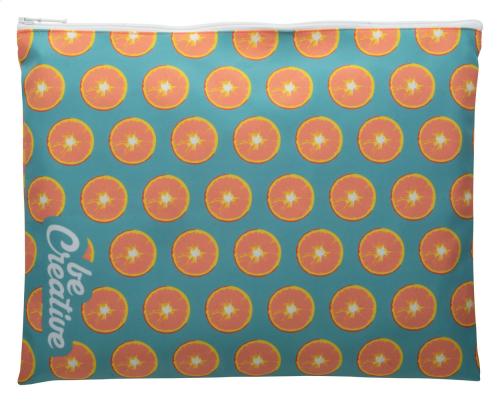 Custom made, zipped document folder in polyester. With all over sublimation printed graphics. A4 size. MOQ: 25 pcs.