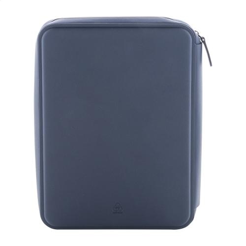 Zipped luxury document folder in recycled PU leather, with 64 lined sheets notepad in recycled paper. Featuring multiple interior pockets for cards and documents. A5 size.