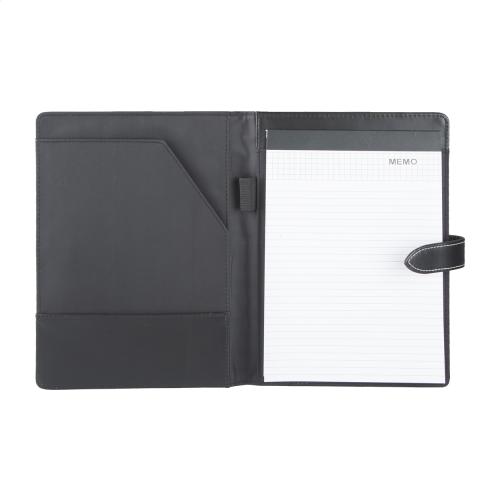 A5 sized, PU leather document folder with 20 lined sheets notepad and pen holder.