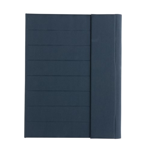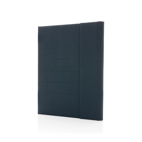 Keep all your work essentials organised with this beautiful A4 Aware™ RPET portfolio with magnetic closure. Inside you will find 1 big sleeve pocket, 2 additional pockets and a pen loop. Including FSC recycled paper notepad. The notepad contains 20 sheets cream coloured lined 70gm/s recycled paper. Interior and exterior 100% recycled polyester. With AWARE™ tracer that validates the genuine use of recycled materials. Each portfolio has reused 3.2 0.5L PET bottles. 2% of proceeds of each Impact product sold will be donated to Water.org. PVC free.