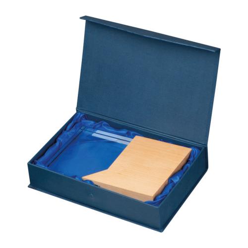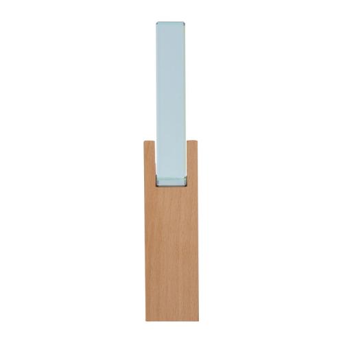 Large glass trophy with a beech wood base.