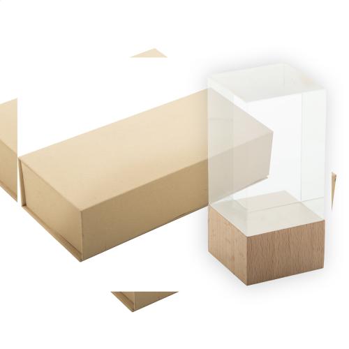 Glass trophy with beech wood base. In kraft gift box.