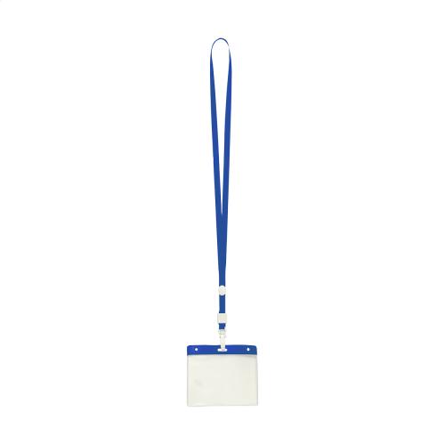 Polyester lanyard with plastic carabiner and PVC badge holder.
