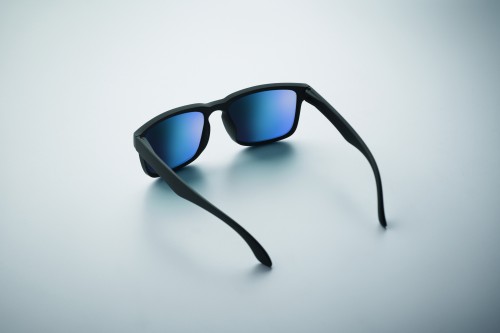 Festival sunglasses with mirrored lenses and matt rubberized frame. UV400 protection.