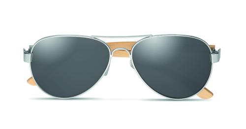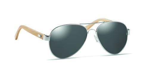 Sunglasses with bamboo arms and coloured mirrored lenses in microfibre pouch. UV400 protection. Bamboo is a natural product, there may be slight variations in colour and size per item, which can affect the final decoration outcome.