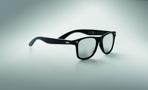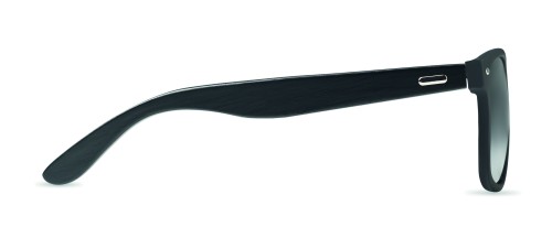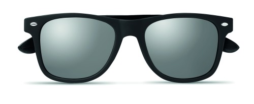 Sunglasses with black coated bamboo arms and all over mirrored lens. UV400 protection. Bamboo is a natural product, there may be slight variations in colour and size per item, which can affect the final decoration outcome.