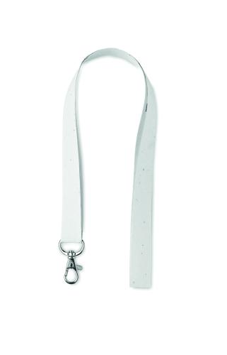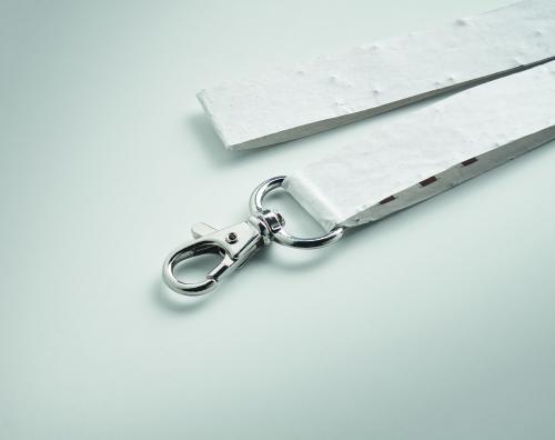 Lanyard in seed paper with detachable buckle. Wildflower seeds recycled paper. 20mm wide. Including metal hook. Made in EU.