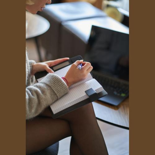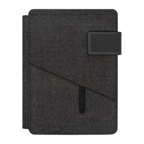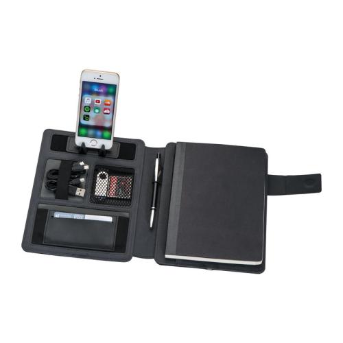 Power bank folder A5 with integrated power bank (4,000 mAh), notebook (128 pages) and slip pocket on the front. Input: 5V/1A - Output: 5V/2.1A.