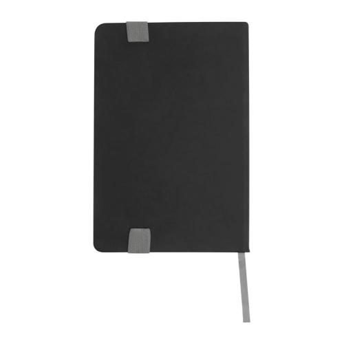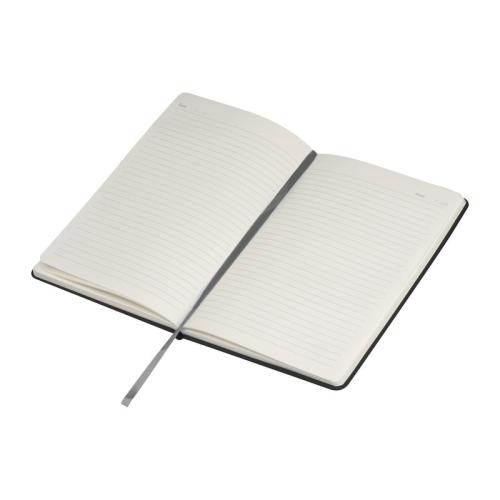 A5 Notebook with PU-Cover, 192 ruled Papers, Bookmark and an elastic band to close, including Pen Holder.