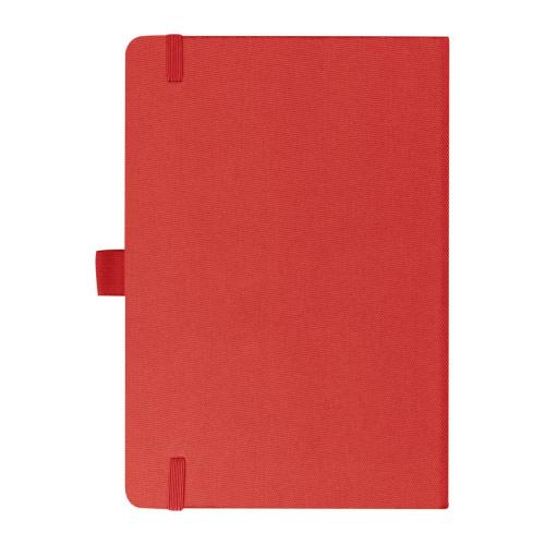 Notebook with cover made of bamboo and recycled polyester on the back. The notebook has 192 lined pages, a ribbon bookmark and a biro loop.