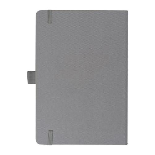 Notebook with cover made of bamboo and recycled polyester on the back. The notebook has 192 lined pages, a ribbon bookmark and a biro loop.
