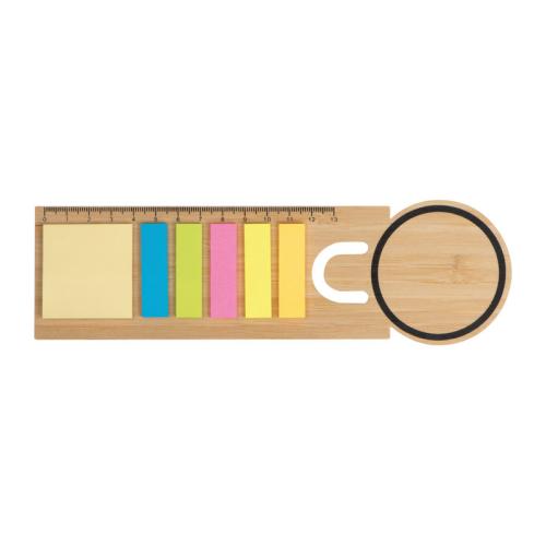 Bamboo bookmark with sticky notes (25 pieces each) and cm scale.