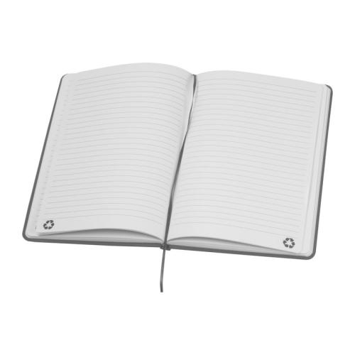 A5 notebook with a cover made of recycled PU and 160 lined pages made of recycled paper.