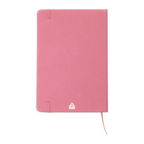 A5 notebook with a cover made of recycled PU and 160 lined pages made of recycled paper.
