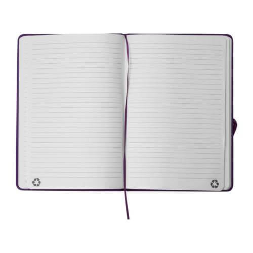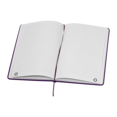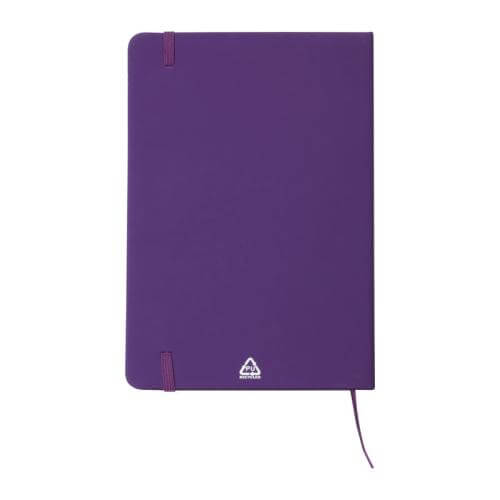 A5 notebook with a cover made of recycled PU and 160 lined pages made of recycled paper.