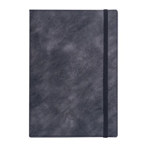 A5 notebook with soft PU cover, 160 lined pages (80 sheets) made of recycled paper, ribbon bookmark, and elastic closure.