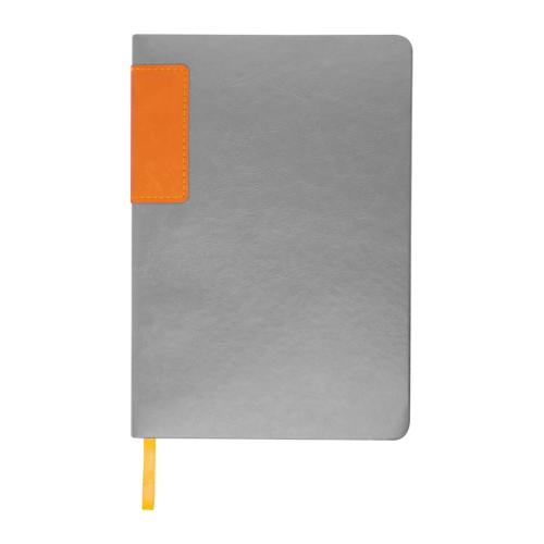 Gray A5 notebook made of recycled PU with 160 lined pages (80 sheets) from recycled paper and colored page edges.