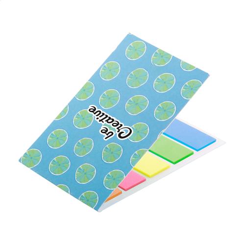 Custom made, paper covered page markers. Includes 100 plastic film page markers in 5 assorted colours (44×12 mm). Price includes full colour printed outside cover. MOQ: 100 pcs.