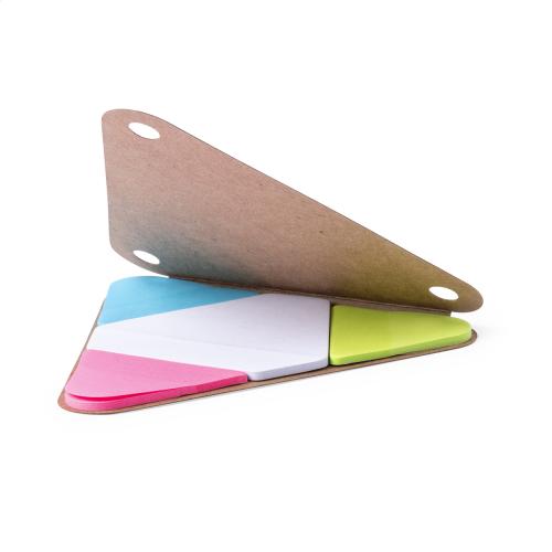 Triangle shaped, recycled cardboard notepad with sticky notes in 2 sizes. Including 20 pcs hexagonal and 60 pcs triangular notes.