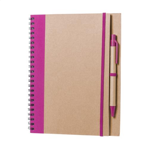 Recycled paper, 60 blank sheets spiral notebook with paper ballpoint pen.