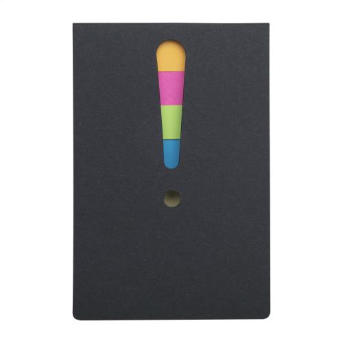 Sticky notepad with 25 notes and 100 page markers (in 4 different colours). With die-cut exclamation mark on the cover.