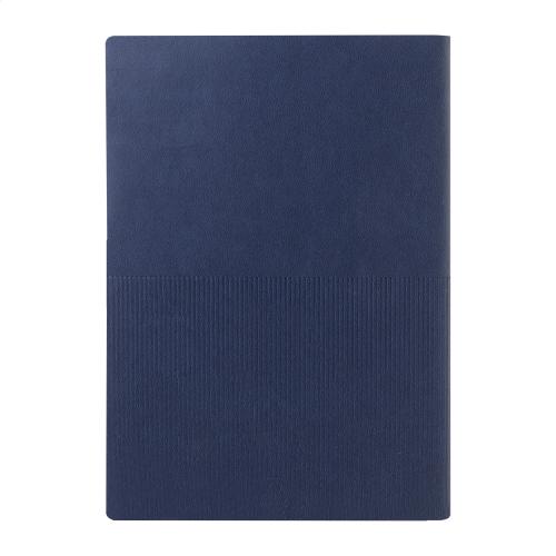 Recycled PU leather covered notebook with striped decoration and metal logo plate. With bookmark and 80 lined sheets in recycled paper. A5 size.