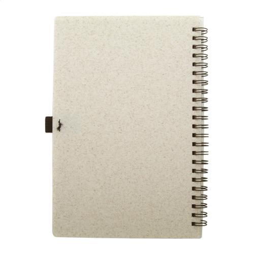 Ecological wheat straw plastic covered spiral notebook with 70 lined sheets in recycled paper and pen holder, A5 size.