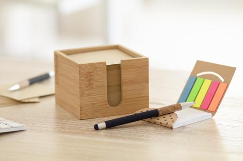 Bamboo note dispenser with 600 sheets memo block in recycled paper (80 gr/m²).