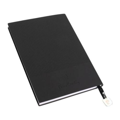Luxury Pierre Cardin set of notebook and DENISE ballpoint pen. The notebook is designed in black colour and contains 160 lined pages of 80 gr paper and a textile bookmark with a metal pendant with the Pierre Cardin logo. The back of the notebook is embossed with the Pierre Cardin logo. The metal ballpoint pen has a rotating mechanism and the lower part of the pen is decorated in a structural design. It contains a quality blue refill with a 1 mm tip. Packed in a gift box, comes with a certificate of authenticity.