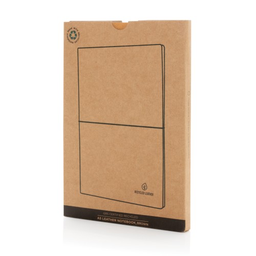 Be environmentally conscious without sacrificing on style with this great looking notebook made with GRS recycled bonded leather. The cover has a pleasant texture and an earthy natural look. 80 sheets/160 lined, cream coloured 70 grams pages of recycled paper make sure you can capture each thought that comes to mind. 95% GRS recycled certified (recycled leather & recycled paper). Plastic free packed in FSC sleeve.