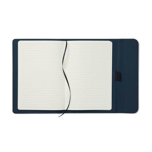 Sleek A5 notebook in a smooth touch. Its cover, crafted from 30% recycled matte PU, features a magnetic closure and an integrated pen holder. Within, 80 sheets/160 pages of 70 gsm lined recycled paper, suitable for all your note-taking needs. The paper insert can be replaced, allowing for prolonged use over time. Certified by GRS (Global Recycled Standard), GRS certification guarantees that the entire supply chain of the recycled materials is certified. The total recycled content is based on the overall product weight. This product contains 54% GRS-certified paper and 5% GRS-recycled PU.