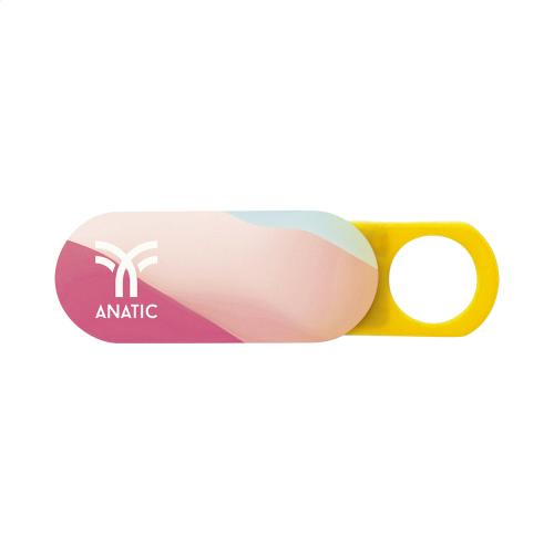 Plastic, anti spy webcam blocker with sliding cover and adhesive back.