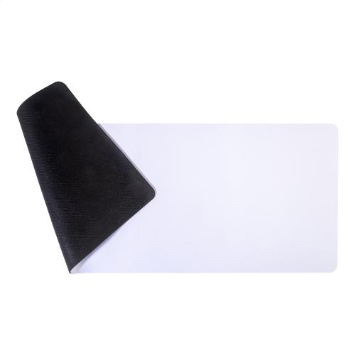 Sublimation desk mat mouse pad in RPET polyester with rubber anti-slip base.
