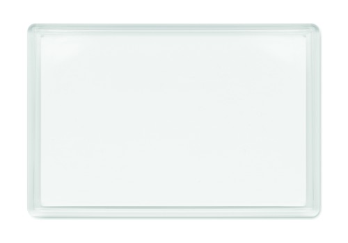 Rectangular acrylic photo holder with magnet. Fits photo inlay size 8.8 x 5.6 cm. Ideal as souvenir or for family memories on the fridge.