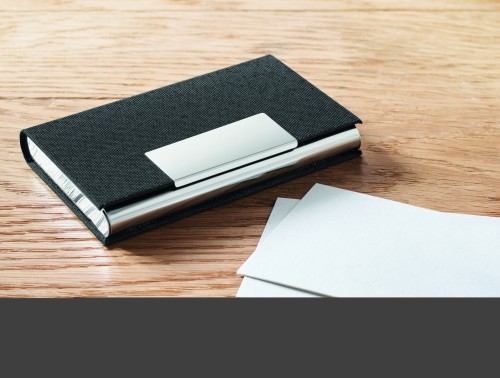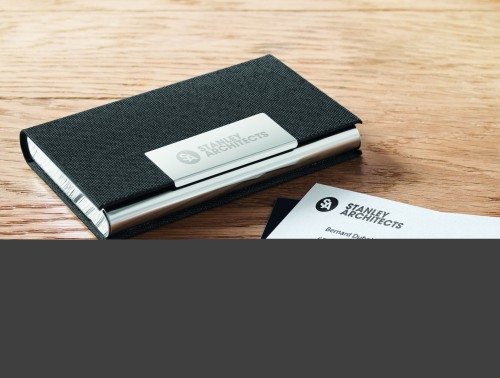 3 piece gift set in gift box. Including metal twist ball pen with RPET polyester detail, RPET polyester key ring and RPET polyester cardholder with metal plate. Blue ink.