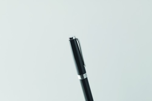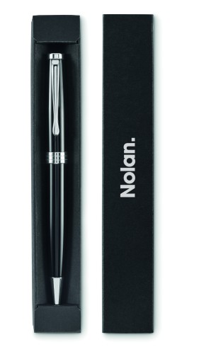Twist ball pen in recycled stainless steel barrel. Blue ink. Presented in gift box.