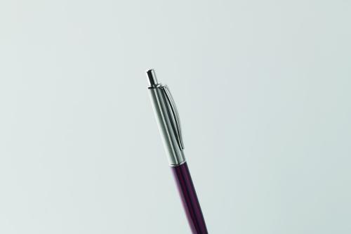 Push button ball pen in recycled stainless steel barrel. Blue ink. Presented in gift box.