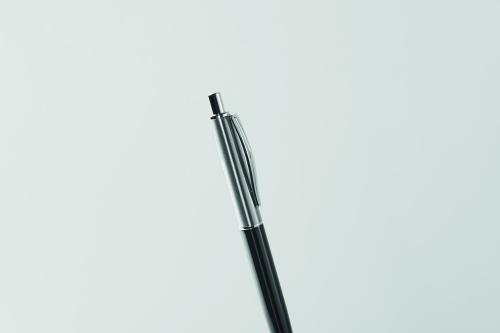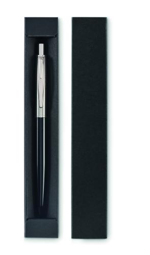 Push button ball pen in recycled stainless steel barrel. Blue ink. Presented in gift box.